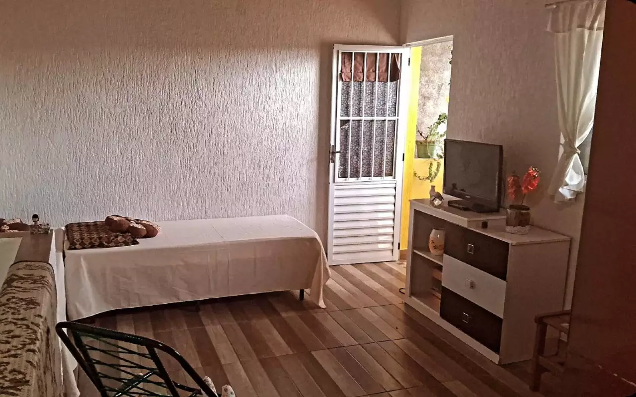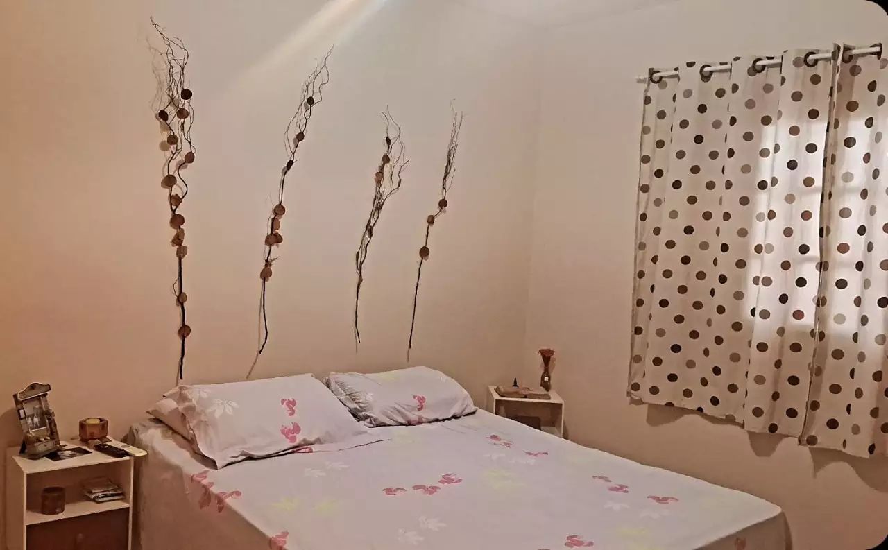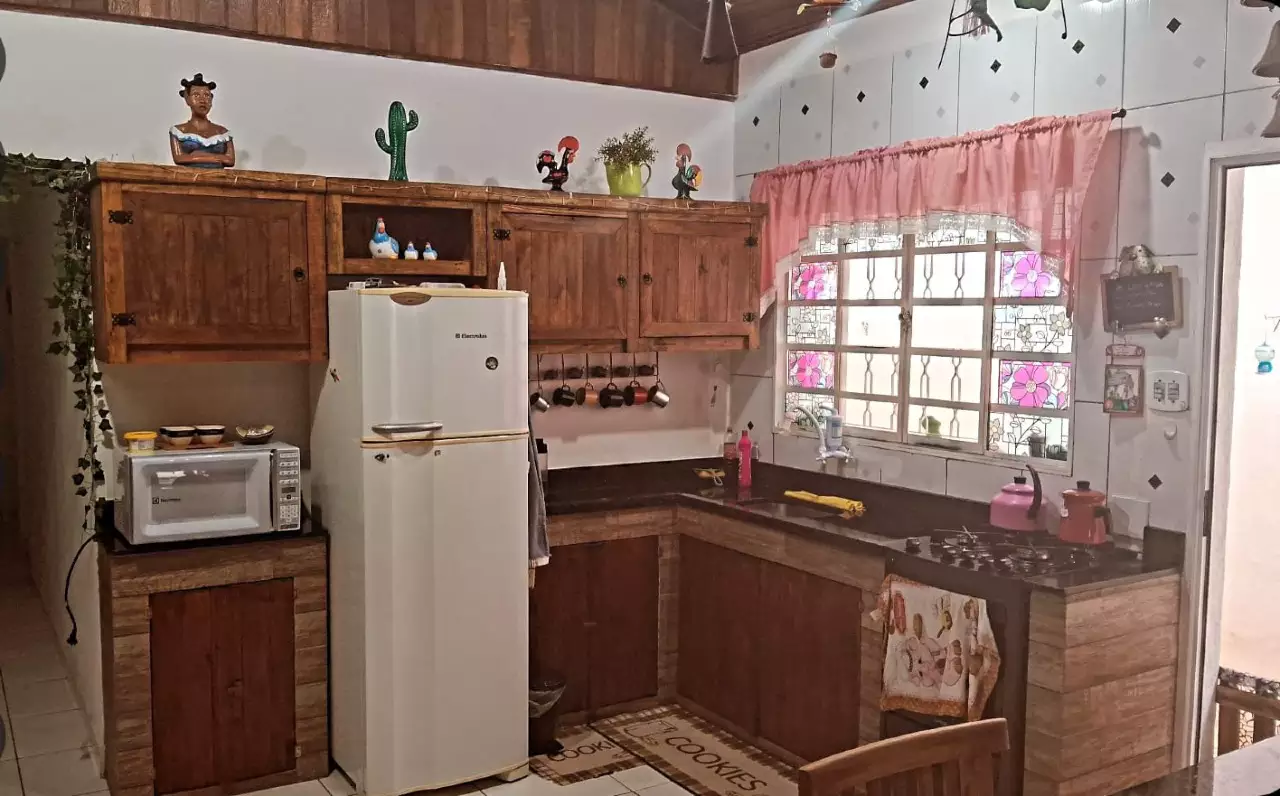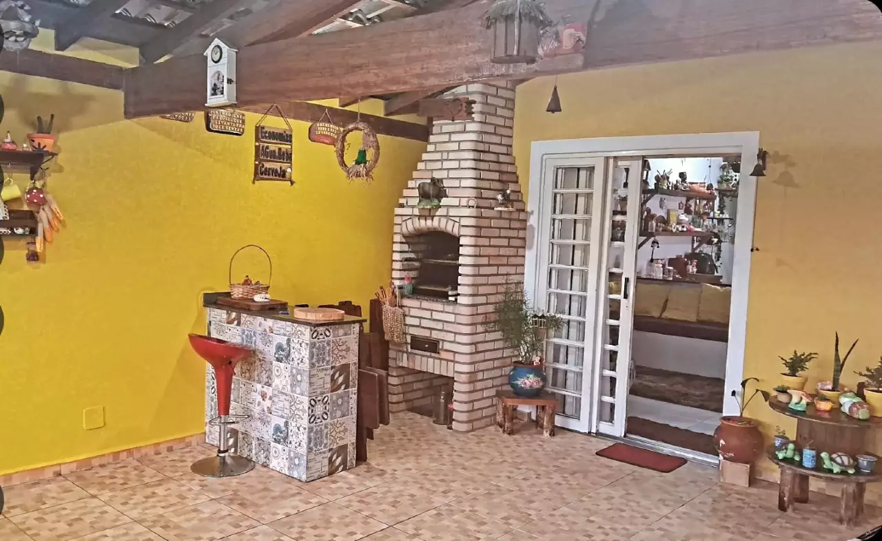 03 quartos (sendo 1 suíte fora da casa com varanda) Terreno 6×25 02 banheiros Quitada Garagem para dois carros com portão automático Cozinha Americana Varanda gourmet Churrasqueira